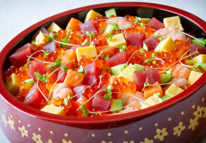 マグロに加え、サーモンやいくらやエビなどをごろっと大きめに切り乗せることで、華やかで美味しいちらし寿司が作れます。おもてなし料理にもぴったりです。
