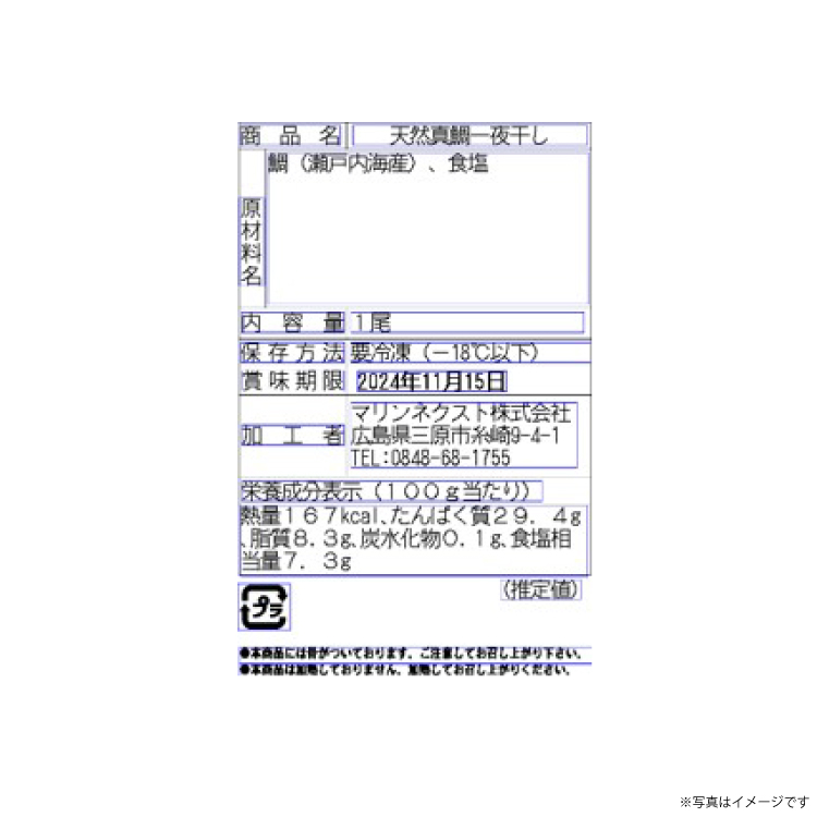 原材料名:鯛(瀬戸内海産)、食塩